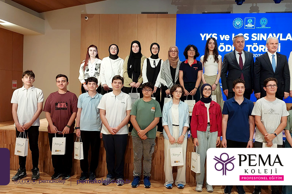 LGS'de Türkiye birincisi olan 7 öğrencimiz ve YKS'de ilk 100'e giren 5 öğrencimiz, Konya Valimiz, Büyükşehir Belediye Başkanımız ve İl Milli Eğitim Müdürümüzün katılımıyla düzenlenen törende ödüllerini aldı.