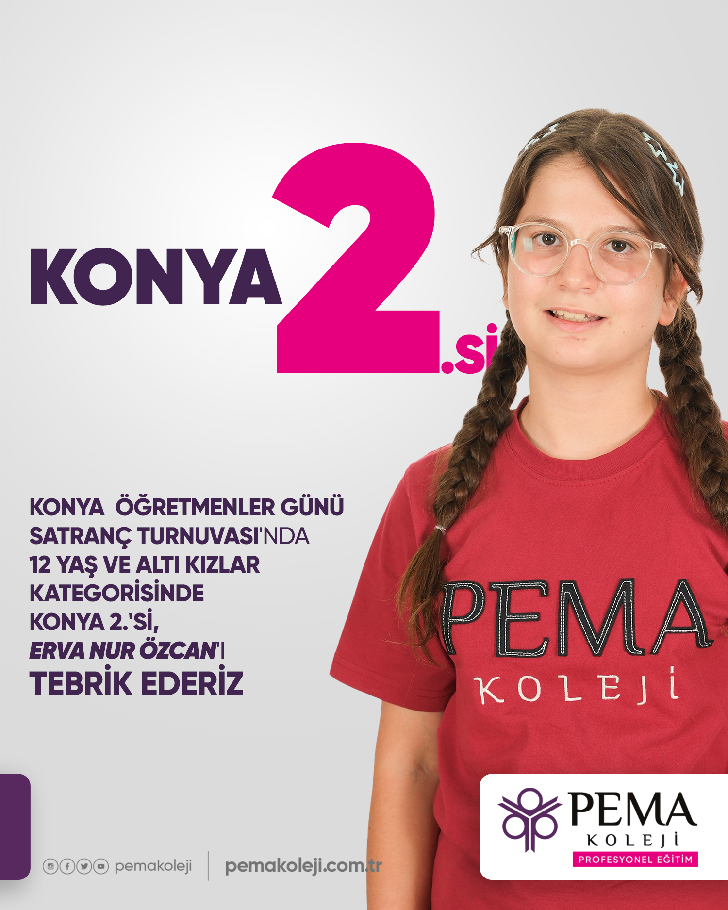♟ Konya Öğretmenler Günü Satranç Turnuvası'nda 12 Yaş ve altı kızlar kategorisinde 🥈Konya 2.'si olan Erva Nur Özcan'ı tebrik ederiz.👏