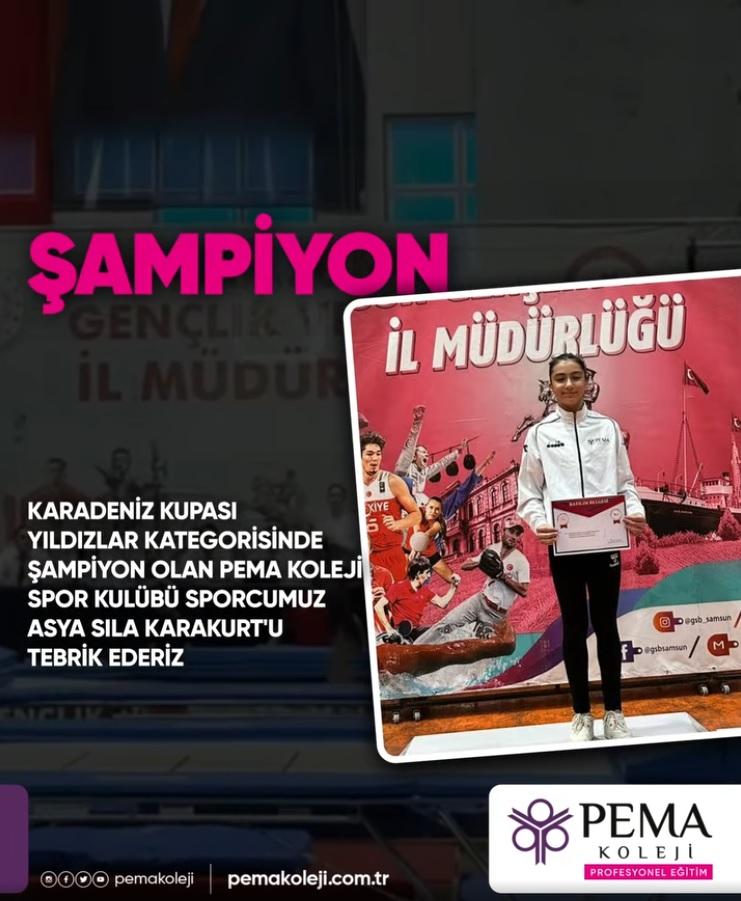 Samsunda 2.si düzenlenen Trampolin Karadeniz Kupası toplamda 100 sporcunun katılımıyla tamamlandı. 5. olarak katıldığı finalde yıldızlar kategorisinde ŞAMPİYON olan PEMA Koleji Spor Kulübü sporcumuz Asya Sıla Karakurt'u tebrik ederiz.