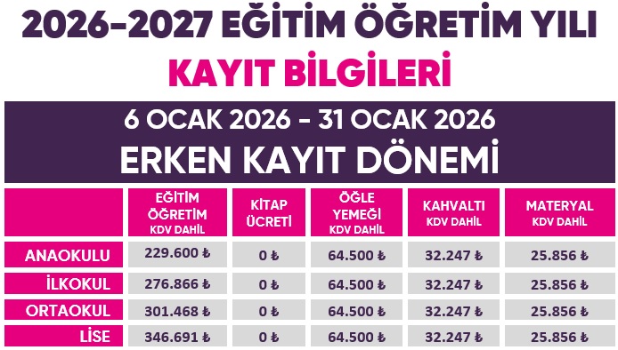 9. sınıflarımıza, MEB'in 14 Haziran 2026’da uygulayacağı “LGS” ye göre Türkiye sıralaması üzerinden indirimler uygulanacaktır. Kazanılan burs ve indirimler 4 yıllıktır ve ilgili kademelerin sonuna kadar geçerlidir.